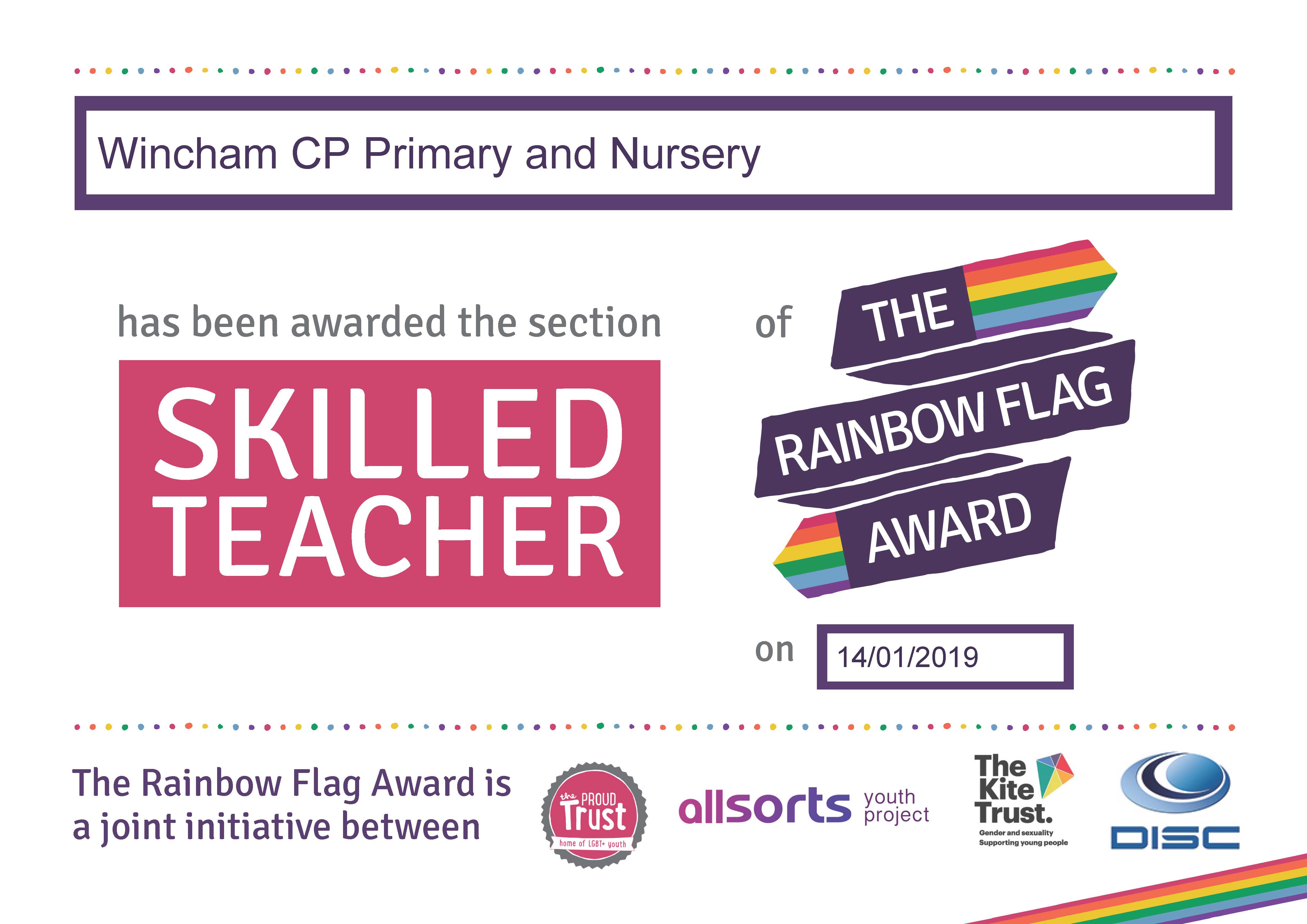 Since September 2018, Wincham Community Primary School has been working towards achieving the Rainbow Flag Award from The Proud Trust to mark our commitment to pupils, parents and staff who are lesbian, gay, bisexual and trans (LGBT+) and for families with LGBT+ members.